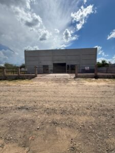Galpão com aproximadamente 500 m², com mezanino e dois banheiros.